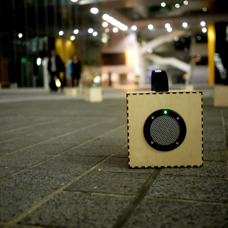 A Folded Path is a pedestrian speaker symphony, a soundtrack for the city, carried through the streets by you, experienced by everyone it passes. Comprising of 30 custom-built, location-sensitive portable loudspeakers containing Minirigs, each playing a different element of the music circumstance have composed. One might be playing a voice, another a sweeping violin or glistening electronic tone. In small groups, you will take different routes through the city, coming together at points to create moments of harmony and resonance. The GPS position of the speaker causes different sections of the composition to be played, so the structure of the work resonates with the environments it passes through. The speakers are highly directional so the movement of the people within the group changes the acoustic relationship between them, the audience becomes the orchestra.